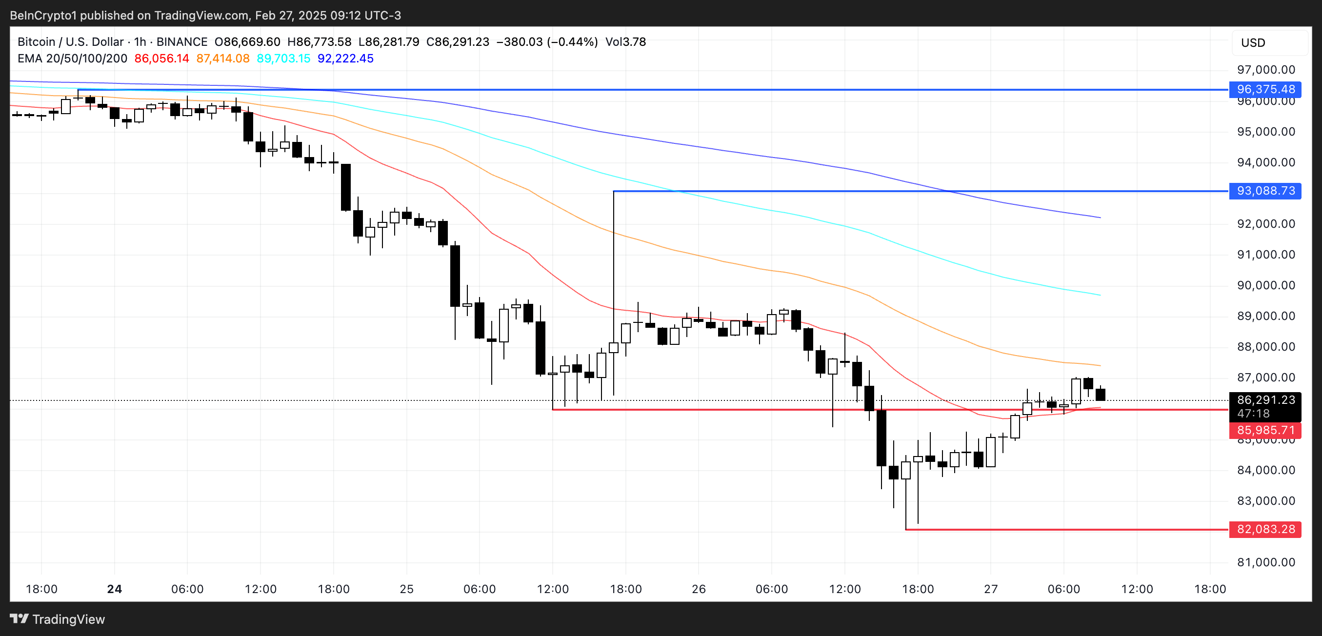 การทะลุผ่านระดับนี้อาจผลักดันราคาไปสู่เป้าหมายสำคัญถัดไปที่ USD 96,375 ซึ่งอาจบ่งชี้ถึงการกลับมาของแนวโน้มขาขึ้นที่กว้างขึ้นซึ่งเป็นลักษณะของการแสดงล่าสุดของ Bitcoin