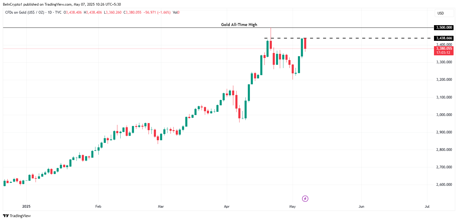 ในขณะเดียวกัน ราคาทองคำพุ่งขึ้นสู่ระดับใกล้สูงสุดเป็นประวัติการณ์ที่ 3,437.60 USD ต่อออนซ์ เพิ่มขึ้น 28.84% ตั้งแต่ต้นปี สะท้อนถึงความไม่สบายใจของนักลงทุน