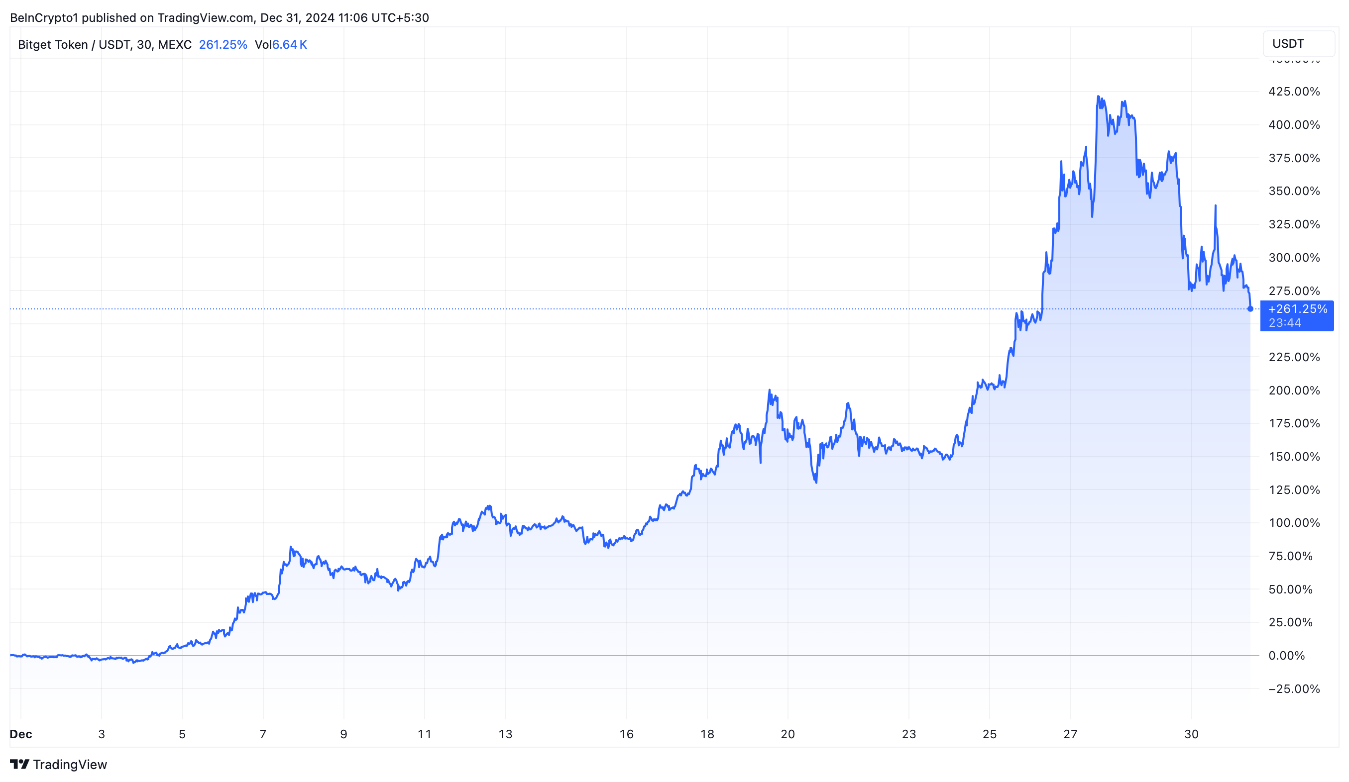 BGB เป็น coin ที่มีผลงานยอดเยี่ยมในเดือนธันวาคม เนื่องจากราคาของมันเพิ่มขึ้นกว่า 260% ใน 30 วัน วันที่ 1 ธันวาคม BGB ซื้อขายอยู่ที่ประมาณ 1.6ดอลลาร์ ตามข้อมูลจาก TradingView Token นี้ซื้อขายอยู่ที่ 5.75 ดอลลาร์ ในขณะที่เขียนบทความนี้