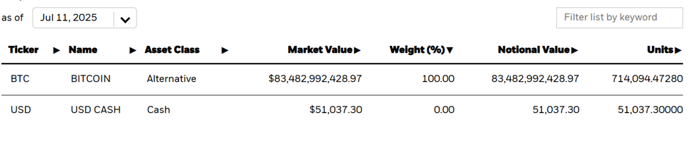 ผู้จัดการสินทรัพย์ขณะนี้ถือโทเค็น BTC จำนวน 717,388 โทเค็น โดยมีมูลค่าตามทฤษฎีที่ 83.86 พันล้าน USD