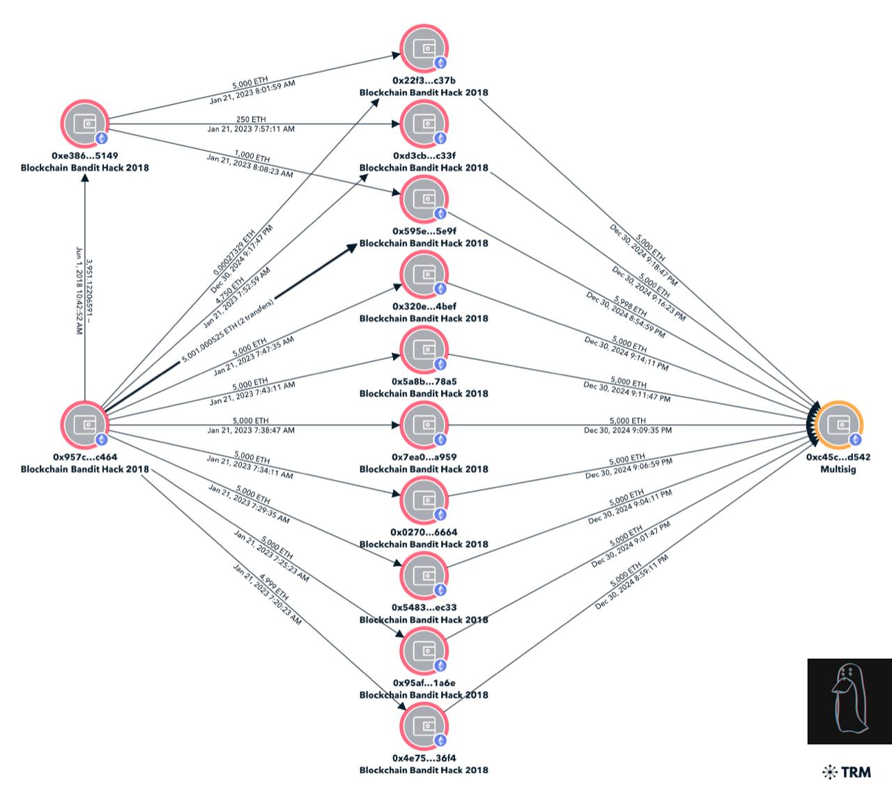 กระเป๋าเงินที่เชื่อมโยงกับผู้โจมตีที่มีชื่อเสียง Blockchain Bandit ได้กลับมามีความเคลื่อนไหวอีกครั้งหลังจากที่หยุดนิ่งมานานกว่าห้าปี