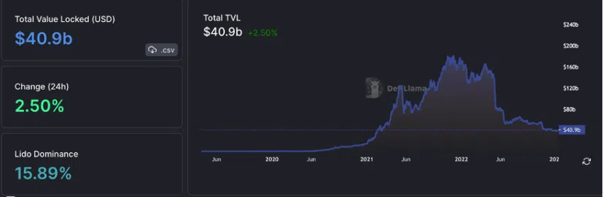 ดังที่เห็นข้างต้น DeFi ได้รับผลกระทบอย่างมากจากการล่มสลายของ Stablecoin ของ Terra ซึ่งสูญเสียการค้ำยันราคา และการล้มละลาย FTX การลดลงของ TVL หรือมูลค่ารวมที่ถูกล็อคมีมูลค่า 40 พันล้านดอลลาร์สหรัฐในขณะที่เขียน ในการเปรียบเทียบ TVL เมื่อต้นปี 2022 อยู่ที่ประมาณ 150 พันล้านดอลลาร์สหรัฐ อ้างอิงจากข้อมูลจาก DefiLlama