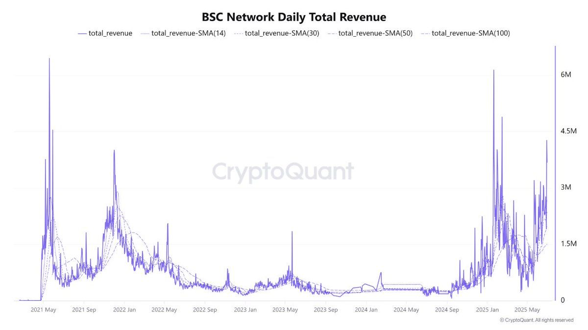 ตลาดสกุลเงินดิจิทัลกำลังเป็นพยานถึงปรากฏการณ์ที่น่าทึ่งในช่วงกลางปี 2025 กับ BNB Chain รายได้ที่พุ่งสูงขึ้นเป็นหลักฐานชัดเจนถึงความน่าสนใจของเครือข่าย มันถึงระดับสูงสุดตั้งแต่ปี 2021 โดยมีจุดสูงสุดที่สำคัญในเดือนมกราคมและปลายเดือนมิถุนายน 2025