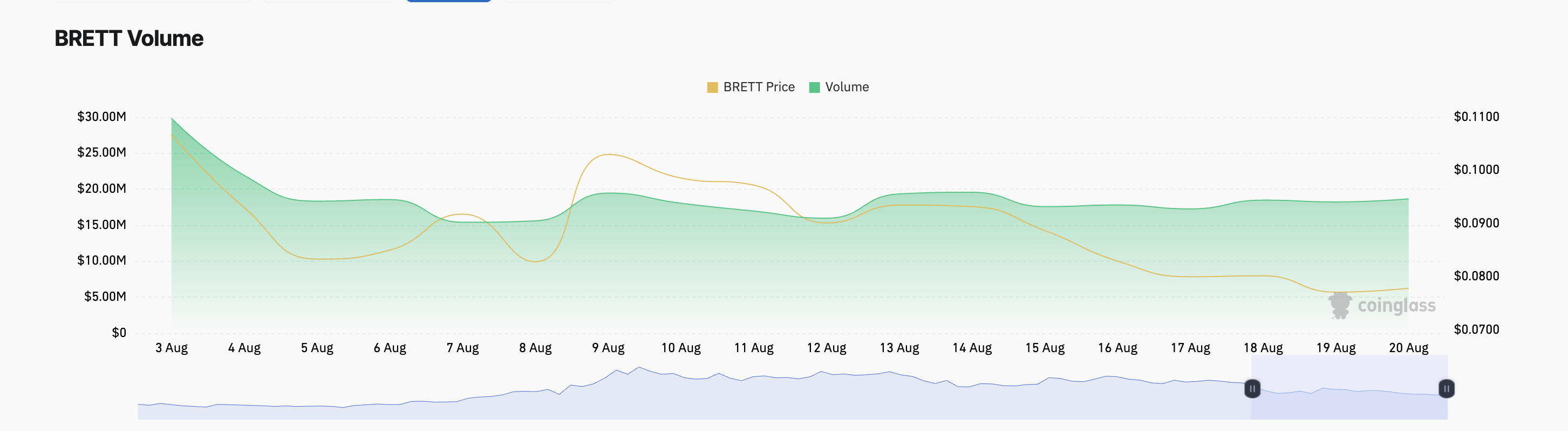 ราคาพุ่งขึ้น 36% ของ BRETT มาพร้อมกับปริมาณการซื้อขายที่เพิ่มขึ้นถึง 66 ล้านดอลลาร์ ณ เวลาที่เขียนนี้ ซึ่ง เพิ่มขึ้น 193% ในช่วง 24 ชั่วโมงที่ผ่านมา