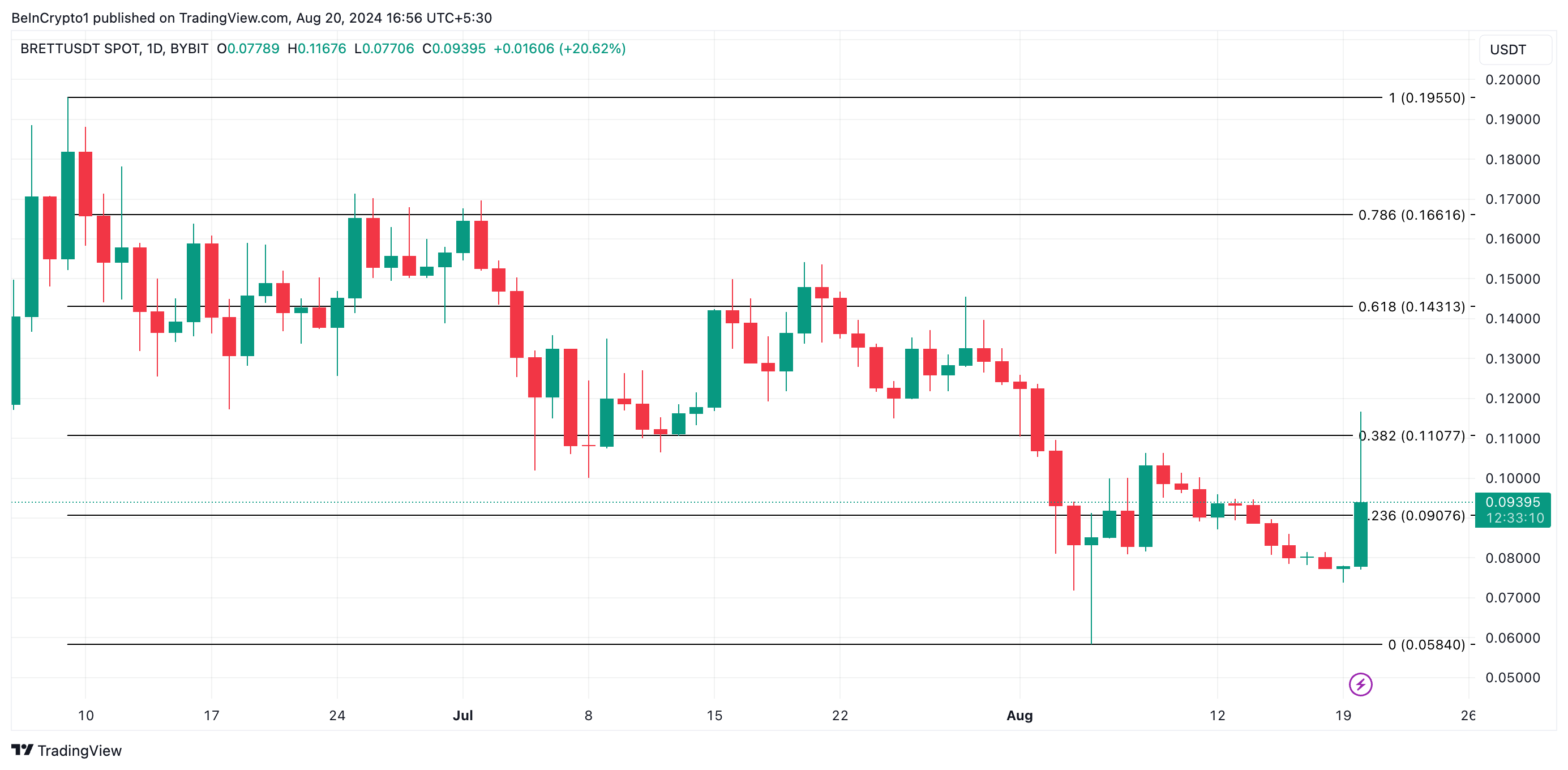 อย่างไรก็ตาม การเพิ่มขึ้นของกิจกรรมการทํากําไรจะทําให้ BRETT สูญเสียกําไรล่าสุดบางส่วน หากแรงขายทวีความรุนแรงขึ้น ราคา อาจลดลงเหลือ 0.90 ดอลลาร์
