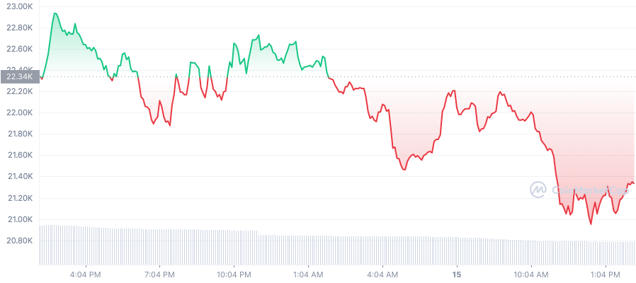 BTC ร่วงลง 6% ซื้อขายต่ำกว่า 22,000 ดอลลาร์
