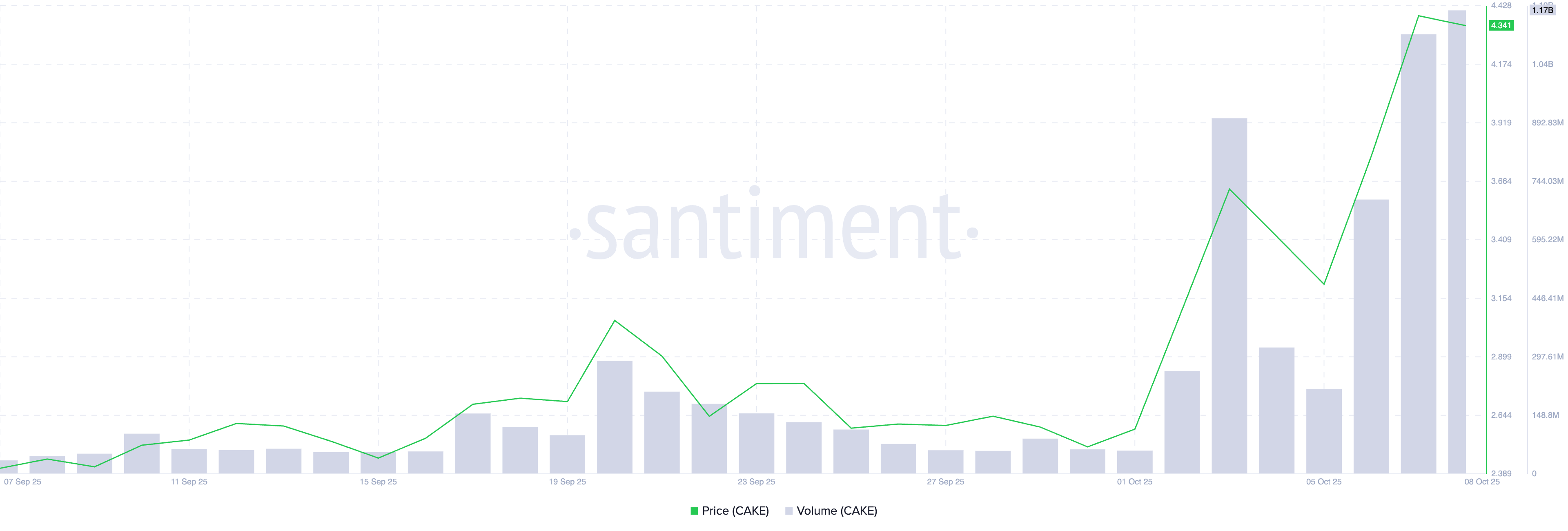 กิจกรรมบนเชนที่ฟื้นตัวนี้ได้แปลเป็นความต้องการที่แข็งแกร่งขึ้นสำหรับ CAKE ซึ่งเป็นโทเค็นพื้นเมืองของ DEX ที่มีปริมาณการซื้อขายมากที่สุดที่ดำเนินการบน BNB Chain, PancakeSwap