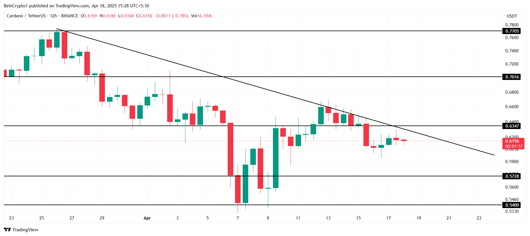Cardano (ADA) กำลังประสบปัญหาในการรักษาระดับราคา โดยการเคลื่อนไหวของราคาล่าสุดสะท้อนถึงการขาดการเติบโตท่ามกลางสภาวะตลาดที่เป็นขาลง