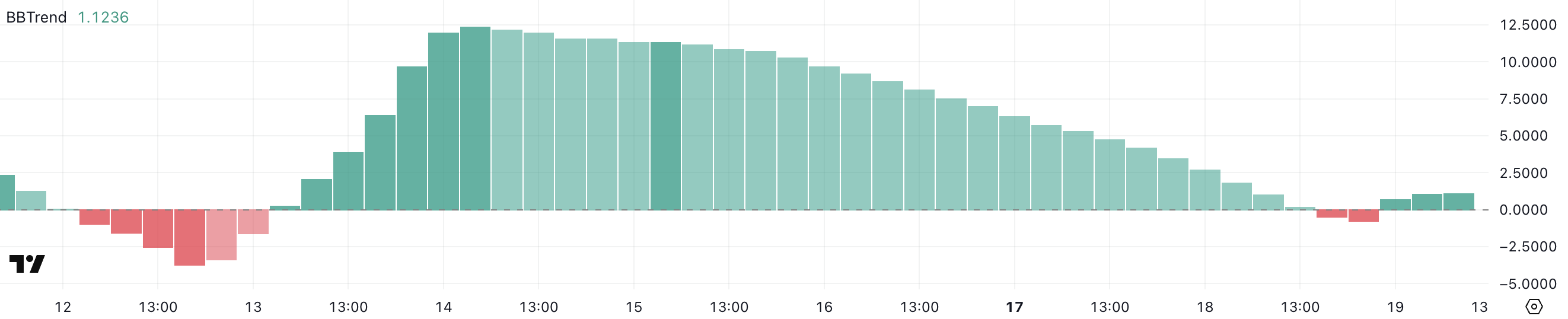 BBTrend หรือ Bollinger Band Trend เป็นตัวชี้วัดที่ช่วยวัดความแข็งแกร่งของแนวโน้มตาม Bollinger Bands โดยมีการเปลี่ยนแปลงระหว่างค่าบวกและลบ โดยค่าบวกบ่งบอกถึงแนวโน้มขาขึ้นและค่าลบบ่งบอกถึงสภาวะขาลง