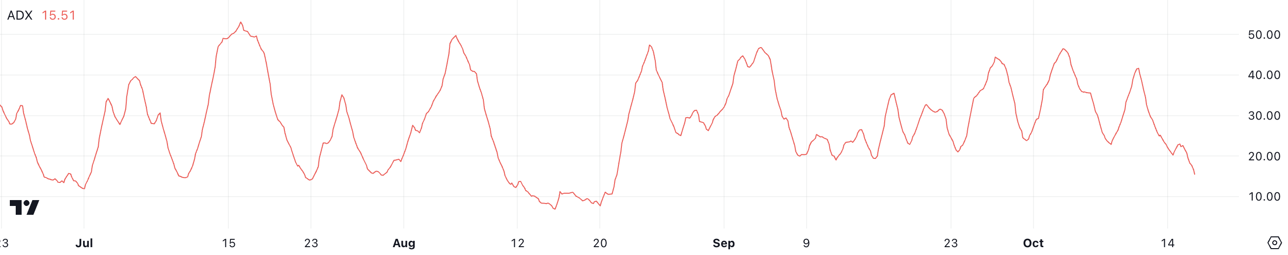 ปัจจุบัน Cardano ADA มีค่า Average Directional Index ADX อยู่ที่ 15.51 ลดลงอย่างมากจาก 41 เมื่อสี่วันที่ผ่านมา การลดลงนี้บ่งชี้ถึงการอ่อนแอของแนวโน้มของ ADA อย่างมาก