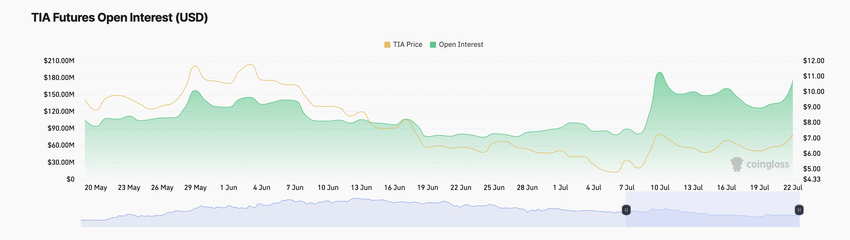 การเพิ่มขึ้นของราคา TIA ทำให้เกิดการเปลี่ยนแปลงในความรู้สึกของตลาด โดยที่ Token มีแนวโน้มที่จะขยายการรวมตัวของมัน ผู้ค้าในอนาคตของมันจึงเริ่มต้องการตำแหน่งยาวมากขึ้น