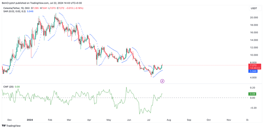 นอกจากนี้ ตัวบ่งชี้ Chaikin Money Flow CMF ของ TIA ก็อยู่ในแนวโน้มขาขึ้นและปัจจุบันอยู่เหนือเส้นศูนย์ที่ 0.07