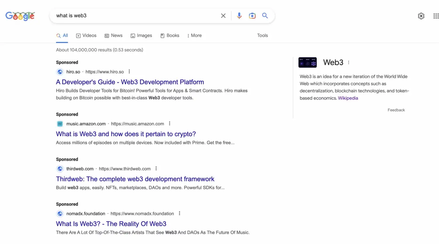Sponsoredแน่นอนว่าใคร ๆ ก็โต้แย้งได้ว่ามีแหล่งข้อมูลออนไลน์มากมายนับไม่ถ้วน — บล็อก วิดีโอ หลักสูตร เกม — ที่มีเป้าหมายในการรับผู้ใช้เข้าสู่อุตสาหกรรม แต่มีปัญหาใหญ่ประการหนึ่งในการบู๊ตสแตรปสำหรับสิ่งนี้: คุณจะเริ่มต้นที่ไหน Googling “What is Web3” ให้โฆษณามากมาย ตามด้วยหน้า Wikipedia ที่มีศัพท์แสง