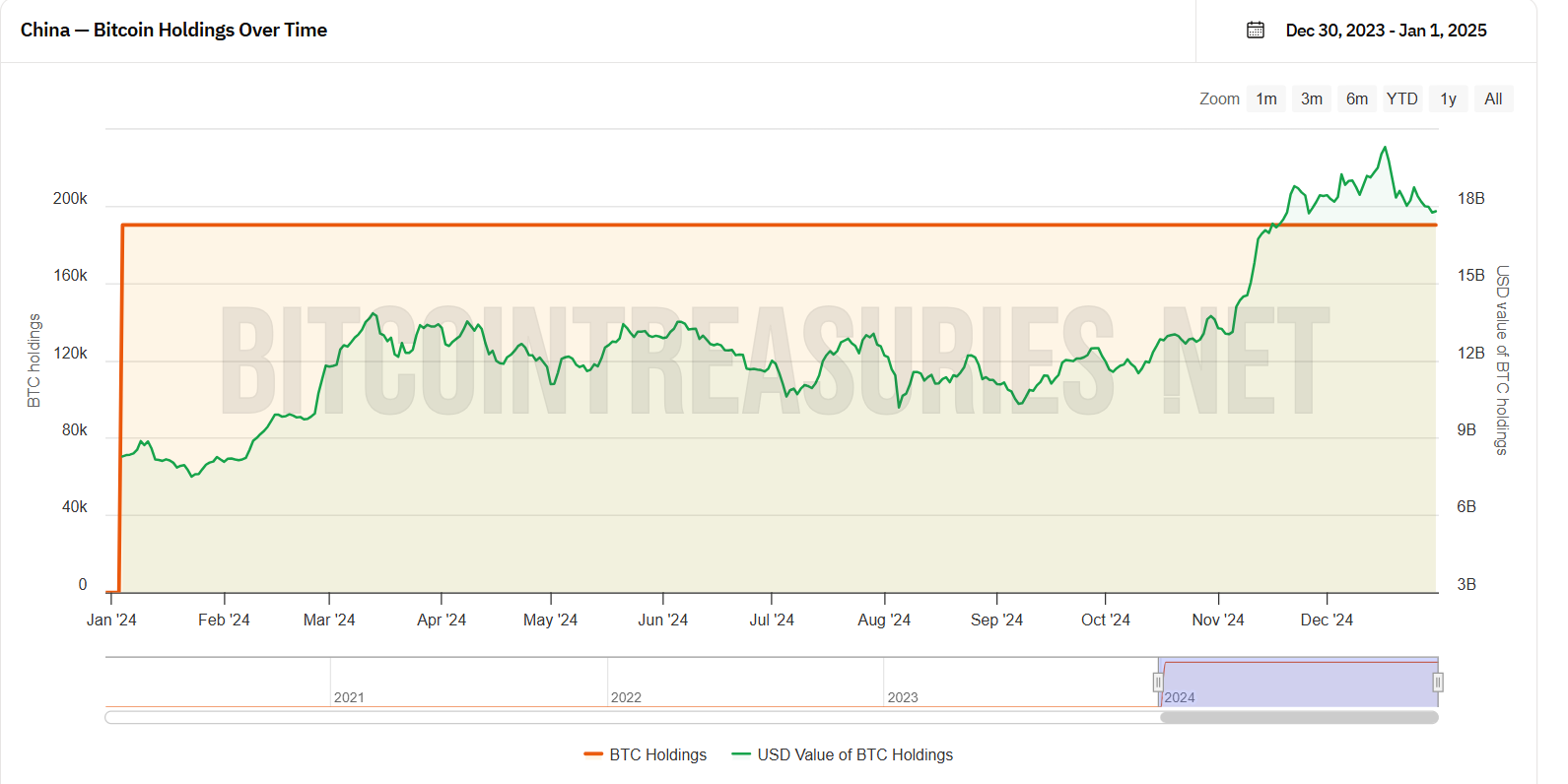 แม้จะมี ท่าทีต่อต้านคริปโต จีนถือครอง Bitcoin มากกว่า 190,000 BTC ทำให้เป็นรัฐบาลที่ถือครอง Bitcoin มากที่สุดเป็นอันดับสองรองจากสหรัฐฯ จีนได้สินทรัพย์เหล่านี้จากการยึดที่เกี่ยวข้องกับกิจกรรมการซื้อขายที่ผิดกฎหมาย