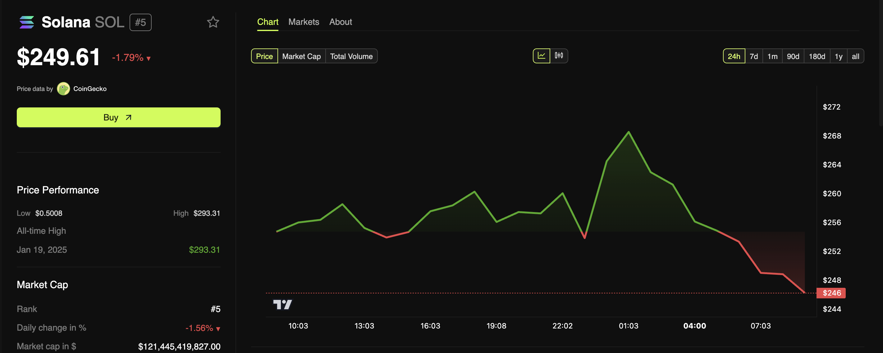 ข่าวนี้ทำให้ราคาของ altcoins ทั้งสองลดลงเล็กน้อย ในขณะที่เขียนข่าว ราคาซื้อขายของ Solana อยู่ที่ USD 249.61 ลดลง 1.79% ในช่วง 24 ชั่วโมงที่ผ่านมา ขณะที่ XRP มีราคาอยู่ที่ USD 3.16 ลดลง 0.98%
