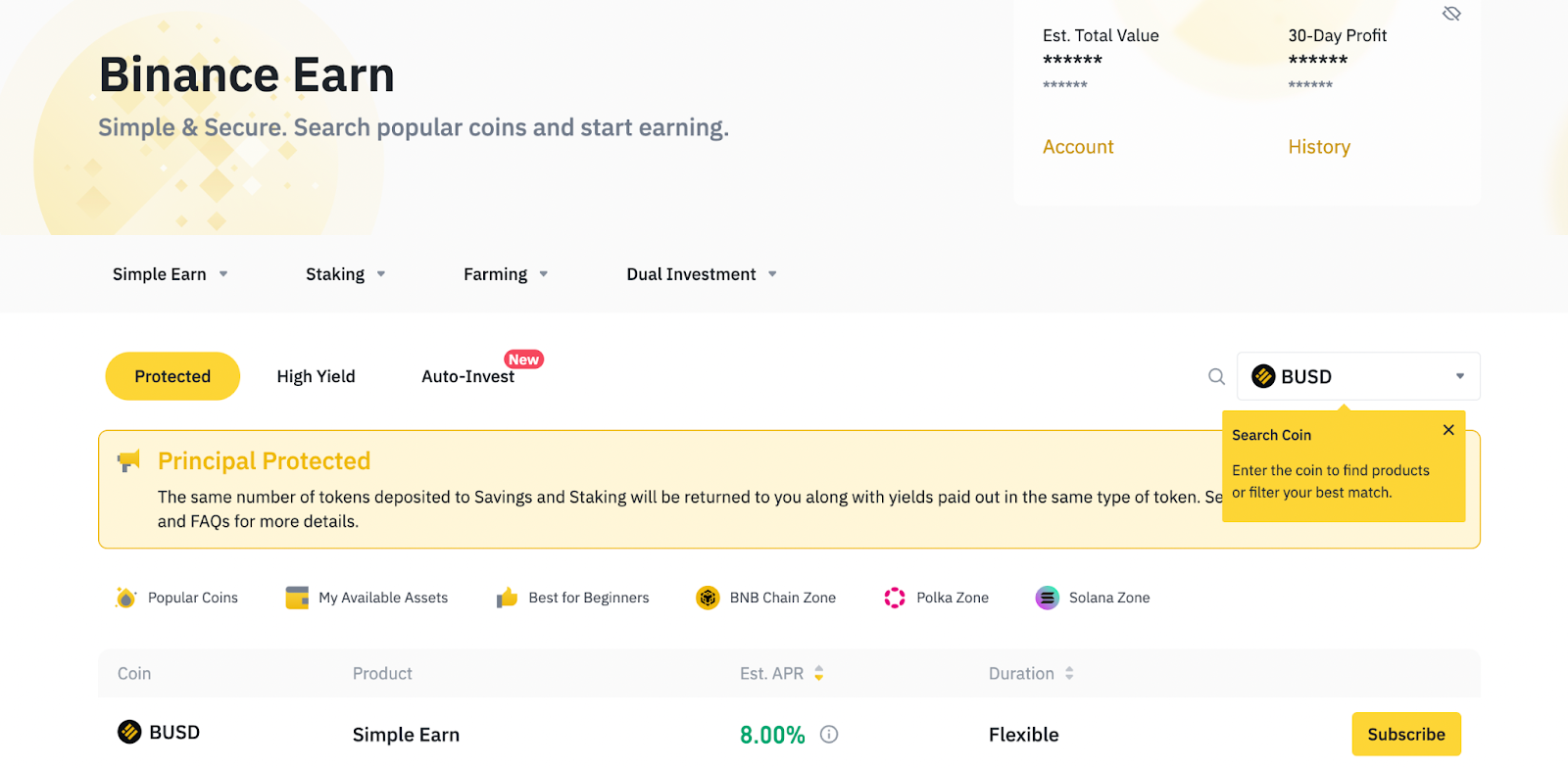 Blockchain.com เสนอผลตอบแทน 6.5% สําหรับ USDC Binance เสนอผลตอบแทนร้อยละต่อปีที่ 8% สําหรับ BUSD FTX ให้ผลตอบแทน 8% สูงถึง $ 10,000