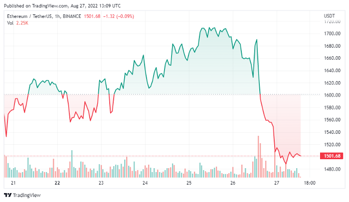 Crypto ร่วงพร้อมตลาดหุ้นสหรัฐ 1.2 ล้านล้านดอลลาร์ในวันเดียว วันนี้ 27 สิงหาคม ตลาดคริปโตเคอเรนซี (cryptocurrency) กลับตัวกลับคืนสู่ระดับแนวรับ โดยปัจจุบัน Bitcoin ซื้อขายอยู่ที่ $20,190 และ Ethereum ที่ $1,501