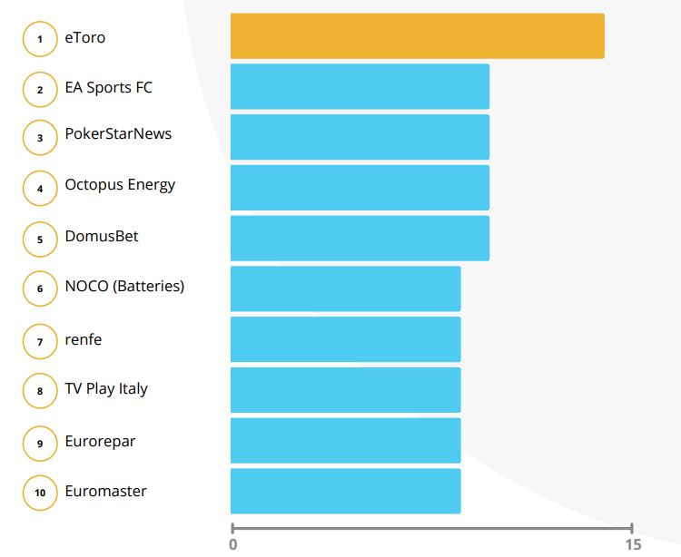 ในทํานองเดียวกัน eToro ได้เพิ่มสถานะอย่างมีนัยสําคัญในการสนับสนุนฟุตบอลยุโรประหว่างปี 2023 ถึง 2024 โดยแยกแยะตัวเองว่าเป็นหนึ่งใน บริษัท Crypto ไม่กี่แห่งที่เพิ่มความพยายามทางการตลาดด้านกีฬา ในช่วงเวลานี้ จากข้อมูลของ SponsorUnited ในขณะที่กว่า 70% ของแบรนด์ Crypto อื่น ๆ เห็นความซบเซาหรือลดลงในข้อตกลงการเป็นสปอนเซอร์ แต่ความสําเร็จของ eToro แสดงให้เห็นถึงแนวโน้มอุตสาหกรรมที่กว้างขึ้นในการใช้ประโยชน์จากพันธมิตรด้านกีฬาเพื่อเสริมสร้างสถานะของแบรนด์