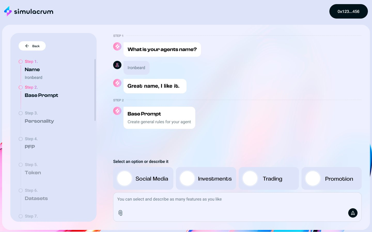 ผ่านแพลตฟอร์มแบบไม่ต้องเขียนโค้ดนี้ ผู้ใช้จะสามารถปรับแต่ง AI agents ได้หลายวิธี รวมถึงการโต้ตอบกับผู้ใช้และชุดข้อมูลที่กำหนดเอง AI agents เหล่านี้ยังสามารถเปิดตัว Token และจัดการคลังของพวกเขาได้ การทดสอบสดครั้งแรกจะดำเนินการผ่าน Simulacrum ซึ่งเป็นโปรโตคอล AI