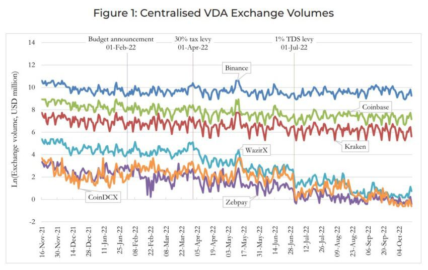 สถาบันวิจัยนโยบายแห่งนี้ระบุผลกระทบโดยตรงสองประการของนโยบาย มันเป็นนอกชายฝั่งของธุรกิจในประเทศและสภาพคล่องในแพลตฟอร์มซื้อขายคริปโตระหว่างประเทศ ข้อมูลนี้อ้างอิงจากแพลตฟอร์มซื้อขายคริปโตแบบรวมศูนย์สามแห่งนอกอินเดีย: Binance, Coinbase และ Kraken แพลตฟอร์มซื้อขายคริปโตของอินเดียสามแห่งที่ดําเนินการในการสํารวจคือ CoinDCX, WazirX และ Zebpay