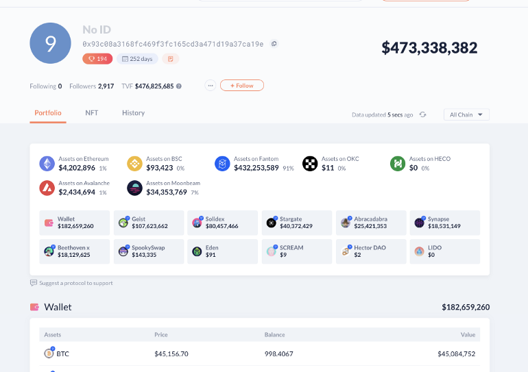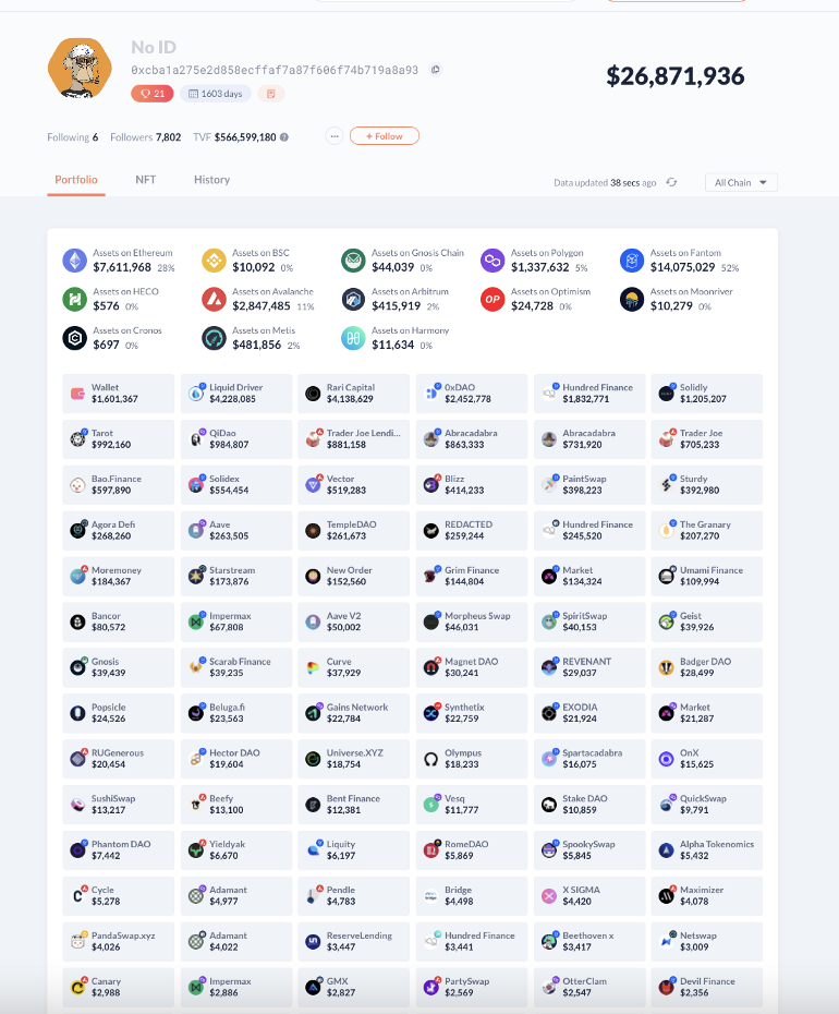 กระเป๋าเงิน 26 ล้านดอลลาร์ด้านบนเป็นตัวอย่างที่สมบูรณ์แบบ เขาลงทุนที่นี่และที่นั่น แต่การถือครองที่ใหญ่ที่สุดของเขาอยู่ที่ Fantom ซึ่งเป็น Chain “ประจำ” ของฉันเช่นกัน (ซึ่งเป็นส่วนใหญ่ของพอร์ตโฟลิโอฉัน) อย่างไรก็ตาม ในทางกลับกัน เขาค่อนข้างกล้าที่จะลงทุนในห่วงโซ่ที่ใหม่กว่าและคลุมเครือมากขึ้นเช่นกัน ซึ่งสามารถทำให้คุณมีโอกาสมากขึ้นที่นี่และที่นั่นนอกเหนือจาก Chain ประจำของคุณ