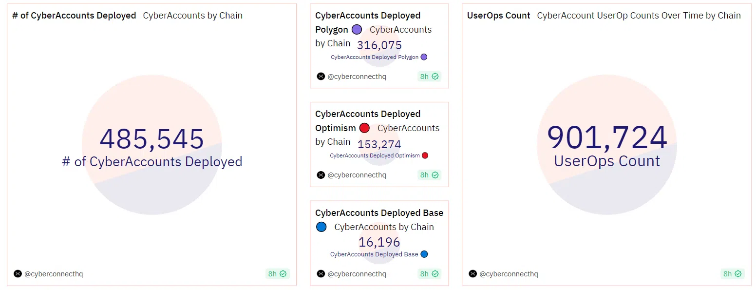 CyberConnect เป็นเครือข่ายโซเชียลมีเดีย Web3 ที่ช่วยให้นักพัฒนาสามารถสร้างแอปพลิเคชันที่เน้นเนื้อหา มิตรภาพ และ Digital Identity ของผู้ใช้งาน เครือข่ายดังกล่าวเพิ่งเปิดให้บริการได้ไม่กี่สัปดาห์และมีปริมาณการใช้งานเพิ่มขึ้นต่อเนื่อง