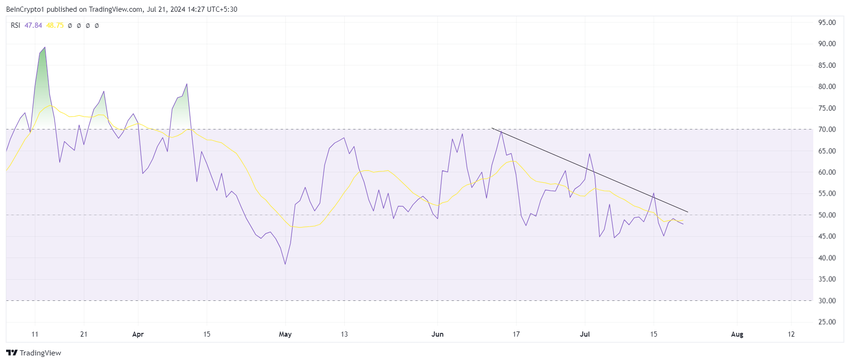 เนื่องจากความไม่แน่นอนที่เพิ่มขึ้น ราคาของ Toncoin อาจ เคลื่อนไหวด้านข้างหรือลดลงเล็กน้อยในอีกไม่กี่วันข้างหน้า ดัชนีความแข็งแรงสัมพัทธ์ (RSI) แสดงสัญญาณของสิ่งนี้