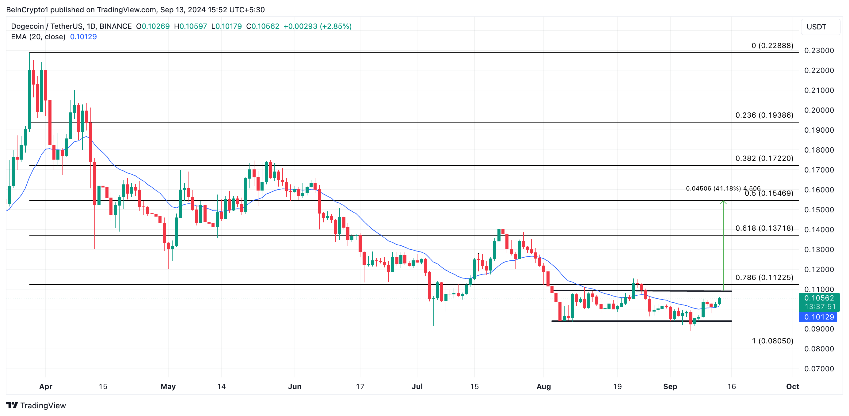 อย่างไรก็ตาม การเคลื่อนไหวแบบนิ่งๆ ของ DOGE ในช่วงไม่กี่สัปดาห์ที่ผ่านมาบ่งชี้ว่าความต้องการนี้ยังไม่แข็งแกร่ง ทำให้การแข่งขันเพื่อผ่านเส้นแนวต้านที่ USD0.11 ซึ่งเป็นเส้นบนของช่องแนวนอน ยากขึ้น