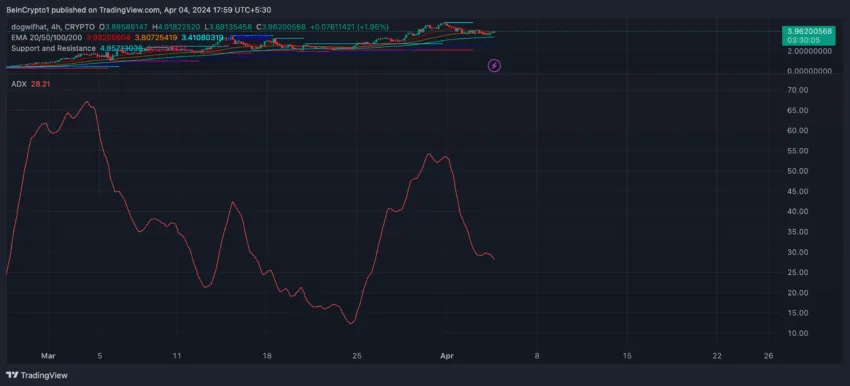 ราคาของ WIF เพิ่มขึ้นมากกว่า 2,000% ในปีนี้ ตอนนี้ มันได้กลายเป็น Memecoins ที่ใหญ่ที่สุดบน Solana และยังแซงหน้า Arbitrum ในแง่ของมูลค่าตลาดอีกด้วย แต่การตัดกันของเส้น EMA เมื่อไม่นานมานี้ บ่งบอกถึงการเปลี่ยนแปลงของเทรนด์ที่อาจจะเกิดขึ้นได้หรือไม่ก็เป็นการชะลอตัวชั่วคราว ซึ่งบ่งชี้ว่าตลาดอาจจะเตรียมพร้อมสำหรับการเคลื่อนไหวในขาขึ้นต่อไป