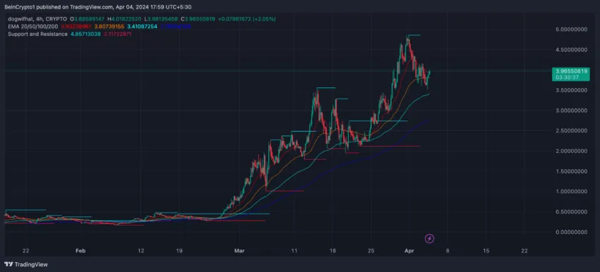 หากเทรนด์ขาขึ้นยังคงดำเนินต่อไป Dogwifhat อาจจะทะลุระดับสูงสุดตลอดกาลที่ 4.82 ดอลลาร์ไปได้ และมุ่งหน้าสู่เป้าหมายใหม่ที่ระดับ 5 ดอลลาร์ ซึ่งจะเป็นการสร้างสถิติใหม่และตอกย้ำถึงความเชื่อมั่นที่แข็งแกร่งในตลาด