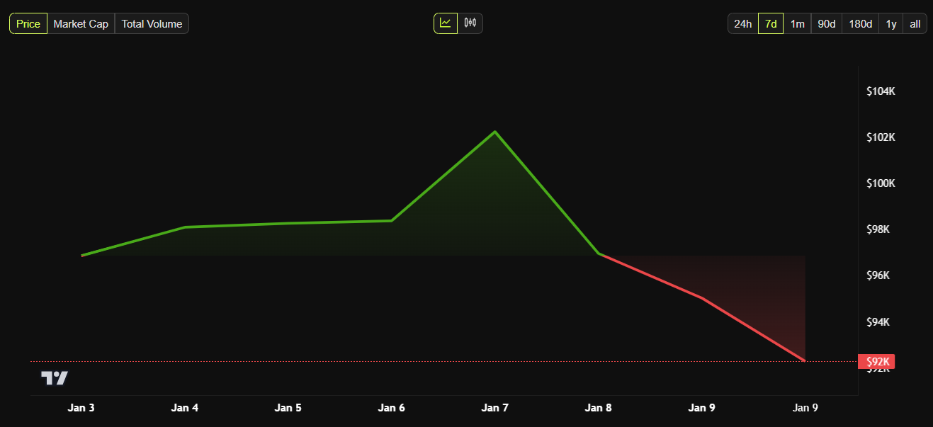 Bitcoin กำลังซื้อขายที่ 93,360 USD ในขณะที่เขียน ลดลง 2.1% ในช่วง 24 ชั่วโมงที่ผ่านมา การลดลงนี้น่ากังวลเนื่องจาก Bitcoin เพิ่งข้าม 100,000 USD เมื่อสองวันที่ผ่านมา
