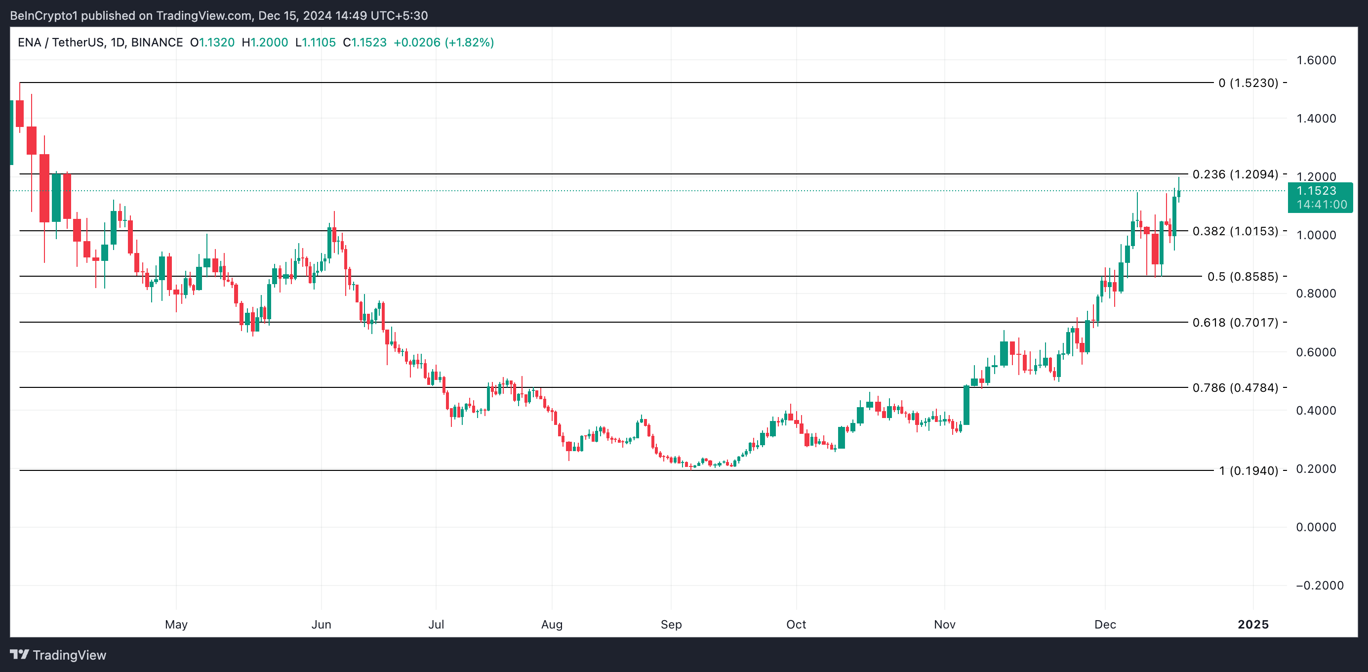 ในขณะที่ ENA เห็นความต้องการเพิ่มขึ้น altcoin นี้มีแนวโน้มที่จะกลับไปสู่จุดสูงสุดตลอดกาลที่ 1.52 ดอลลาร์ ซึ่งบันทึกไว้ครั้งสุดท้ายในเดือนเมษายน