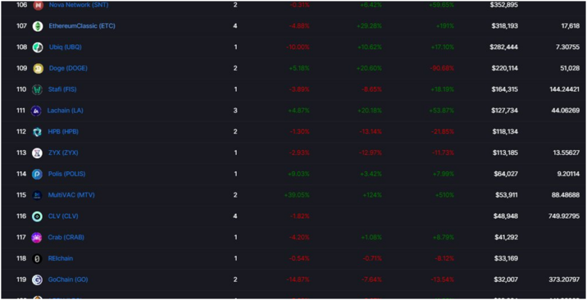 ตัวชี้วัดที่ดีคือมีการเพิ่มขึ้นของมูลค่าเชนต่างๆ อย่างเช่น Dogecoin, Lachain, Crab, Ubiq และ Polis