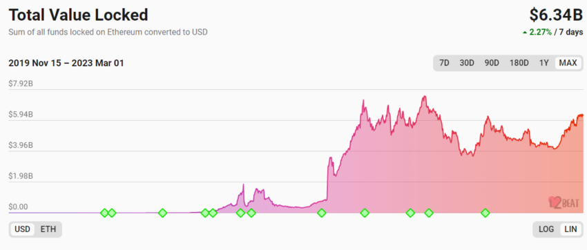 ตามรายงานของ L2beat ค่า TVL สําหรับระบบนิเวศ L2 ทั้งหมดอยู่ที่ 6.34 พันล้านดอลลาร์สหรัฐ โดยเพิ่มขึ้น 53% ตั้งแต่ต้นปี 2023 และตอนนี้ลดลงเพียง 15% จากระดับสูงสุดตลอดกาลที่ 7.47 พันล้านดอลลาร์สหรัฐในเดือนเมษายน 2022