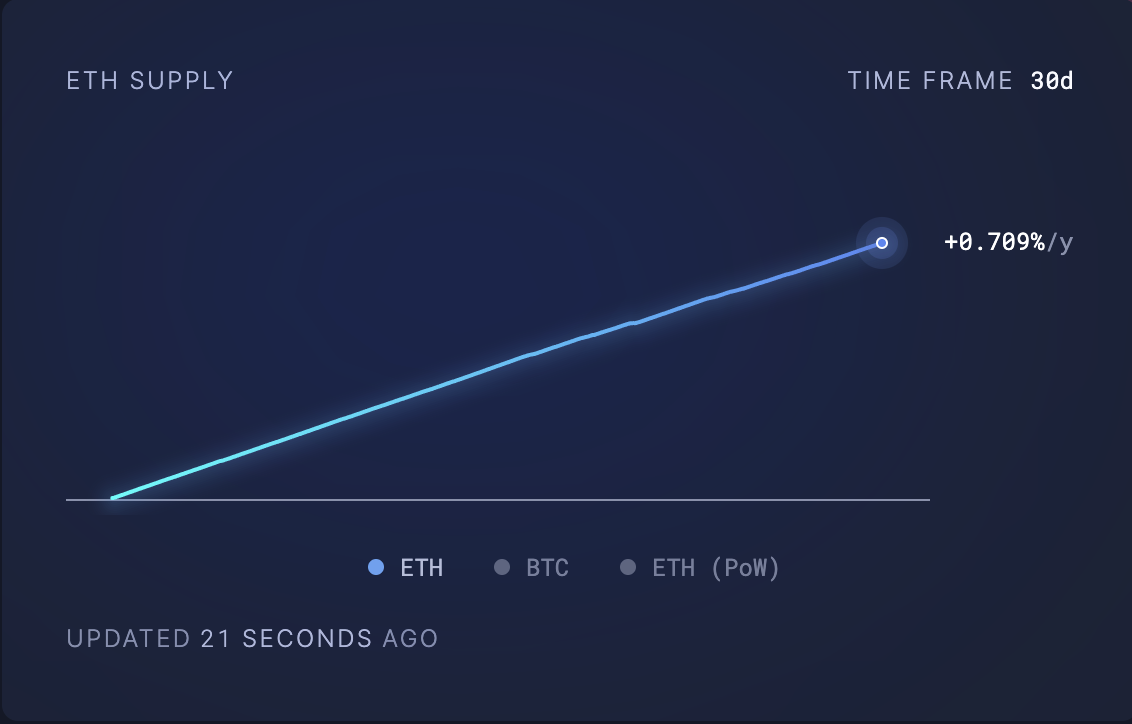 Sponsoredข้อมูลจาก Ultrasoundmoney แสดงว่ามี ETH จำนวน 70,111 เหรียญ มูลค่าเกิน 163 ล้าน USD เข้าสู่ปริมาณการหมุนเวียนในช่วง 30 วันที่ผ่านมา ด้วยการเพิ่มขึ้นของโทเค็นในตลาด ทำให้ปริมาณการเสนอขายเพิ่มขึ้นเร็วกว่าความต้องการ ส่งผลให้ราคามีแนวโน้มลดลง