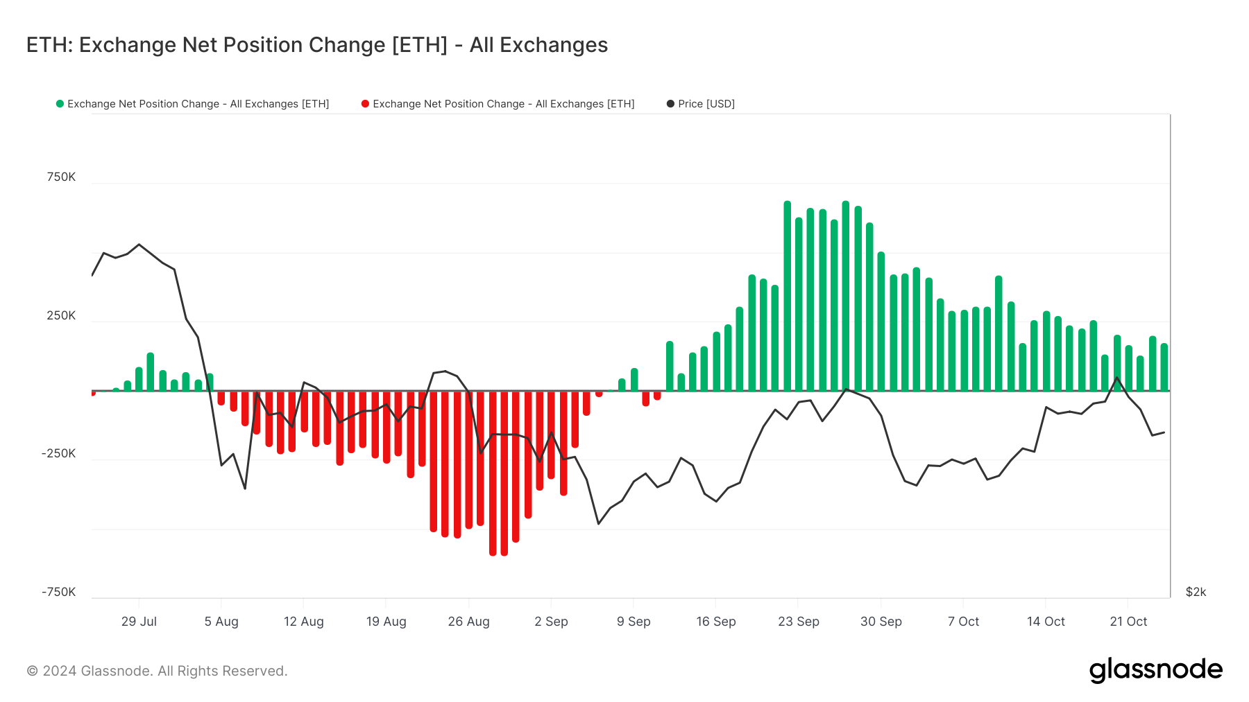 การลดลงของตำแหน่งในตลาดแลกเปลี่ยนมักสะท้อนถึงแรงขายที่ลดลง เนื่องจากผู้ค้าเลือกที่จะถือ ETH มากกว่าการขายออก การเปลี่ยนแปลงความรู้สึกนี้จะเป็นประโยชน์ต่อเส้นทางราคาของ Ethereum เนื่องจากแรงกดดันด้านขายที่ลดลงสามารถเปิดโอกาสให้ราคาพุ่งขึ้นได้