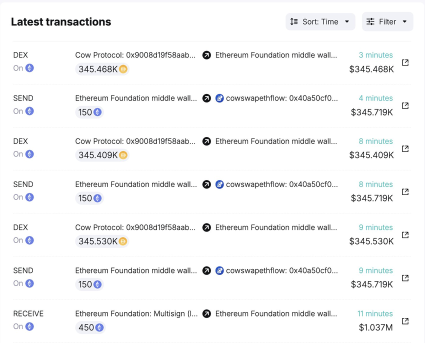 นอกจากนี้ Ethereum Foundation ขาย ETH จำนวน 450 หน่วย ได้ 1.03 ล้าน USD ใน DAI ซึ่งยิ่งทำให้เกิดความกังวลเกี่ยวกับแรงกดดันต่อราคา