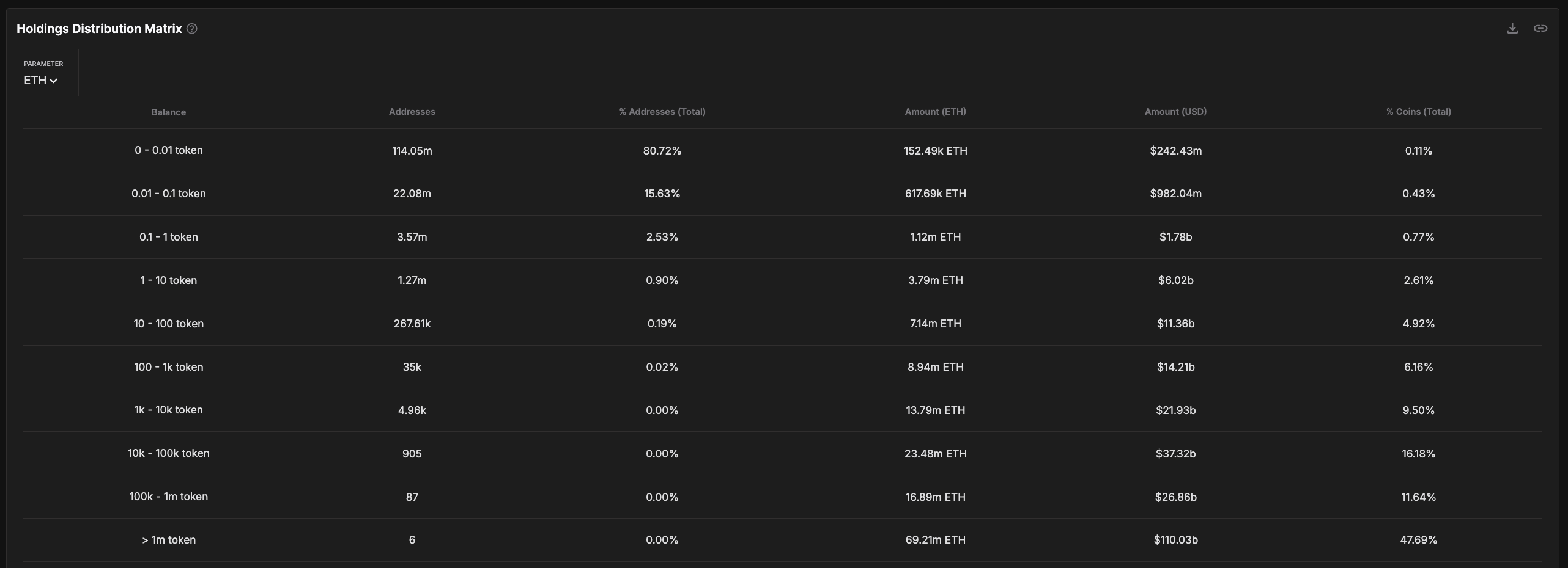 การวิเคราะห์เมทริกซ์การกระจายการถือครอง ETH เผยให้เห็นสัญญาณที่น่ากังวลของการกระจุกตัวที่ลึกขึ้น