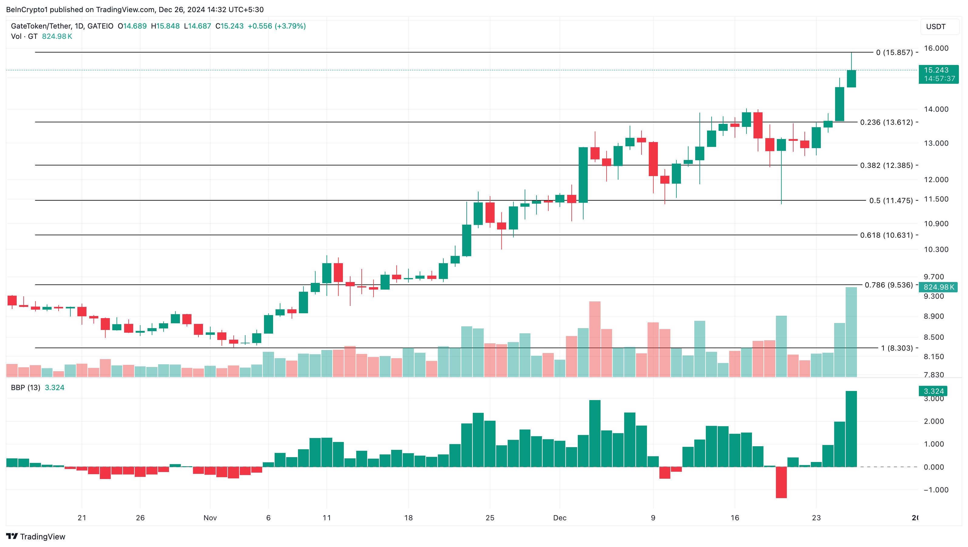 การพุ่งขึ้นของ GT ไปที่ 15 USD ถือเป็นจุดสูงสุดใหม่ตลอดกาลสำหรับ altcoin ซึ่งราคาของมันได้พุ่งขึ้นเกือบ 200% ในปีนี้ อย่างไรก็ตาม คำถามที่น่ากังวลคือโทเค็นนี้จะสามารถรักษาแรงผลักดันในฐานะ altcoin ที่มีประสิทธิภาพสูงสุดได้หรือไม่