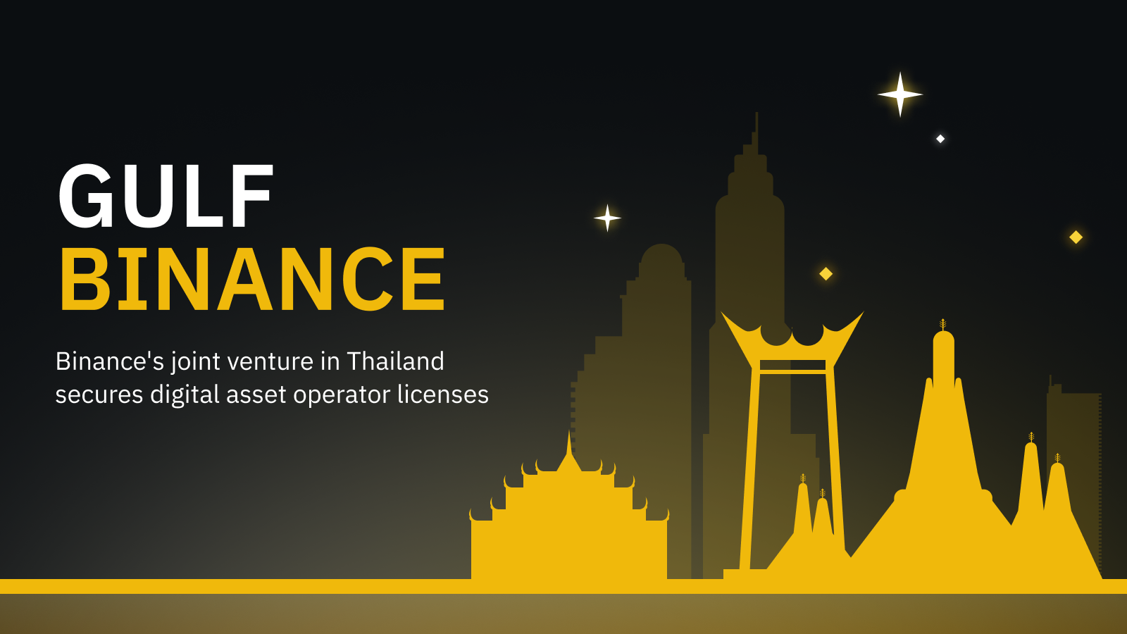 Gulf Binance Co., Ltd. (Gulf Binance) ซึ่งเป็นบริษัทร่วมทุนระหว่าง Binance และ Gulf Innova Co., Ltd. (Gulf) ได้รับใบอนุญาตประกอบการสินทรัพย์ดิจิทัลจากกระทรวงการคลังผ่านทางสำนักงานคณะกรรมการกำกับหลักทรัพย์และตลาดหลักทรัพย์ (ก.ล.ต.) เป็นที่เรียบร้อย
