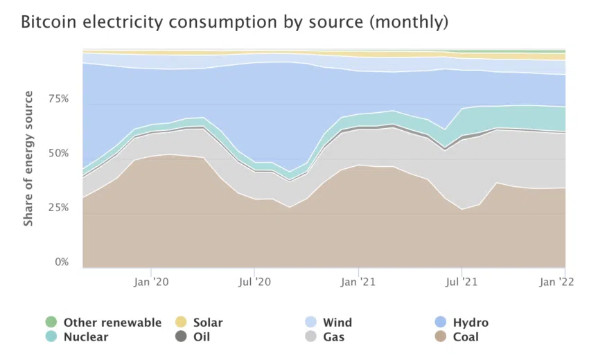ในความพยายามที่จะสร้างความตระหนักรู้เกี่ยวกับผลกระทบต่อสิ่งแวดล้อมของการขุด Bitcoin พบว่า Greepeace ร่วมมือกับนักกิจกรรมศิลปะ Benjamin Von Wong เพื่อรณรงค์ “เปลี่ยนรหัส ไม่ใช่สภาพอากาศ” ซึ่งมีจุดมุ่งหมายเพื่อแปลงกลไกฉันทามติของ Bitcoin ให้เป็นแบบ Proof-of-Stake (PoS) ที่เป็นมิตรกับสิ่งแวดล้อมมากขึ้น