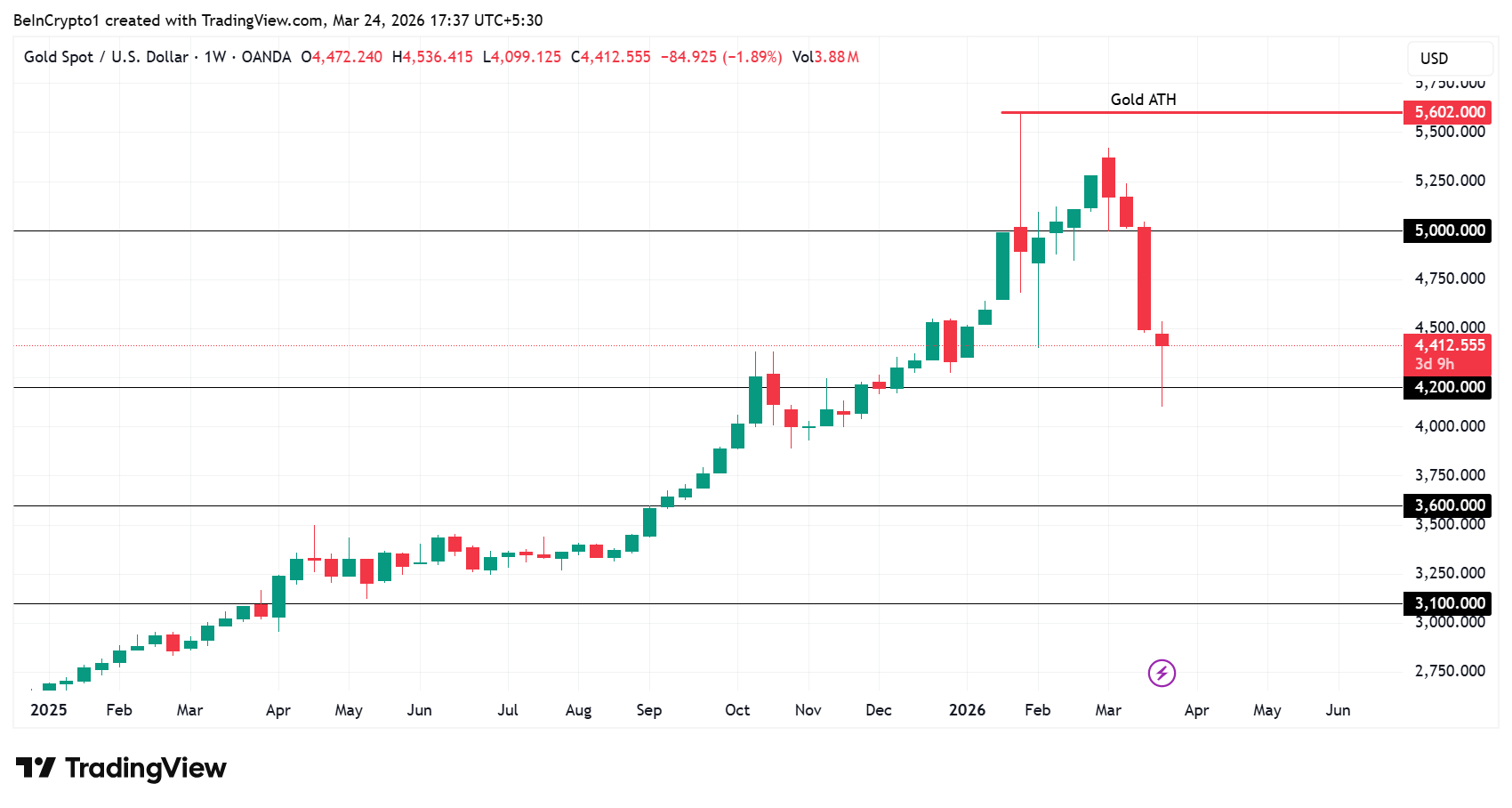 ในกรณีที่สถานการณ์ออกมาในเชิงลบ หากราคาทองคำหลุด 4,200 USD จะส่งผลให้ราคาร่วงลงไปที่ราว 4,000 USD และมีโอกาสขยับลงต่อถึง 3,600 USD หรือในกรณีที่แย่ที่สุดอาจร่วงไปถึง 3,100 USD