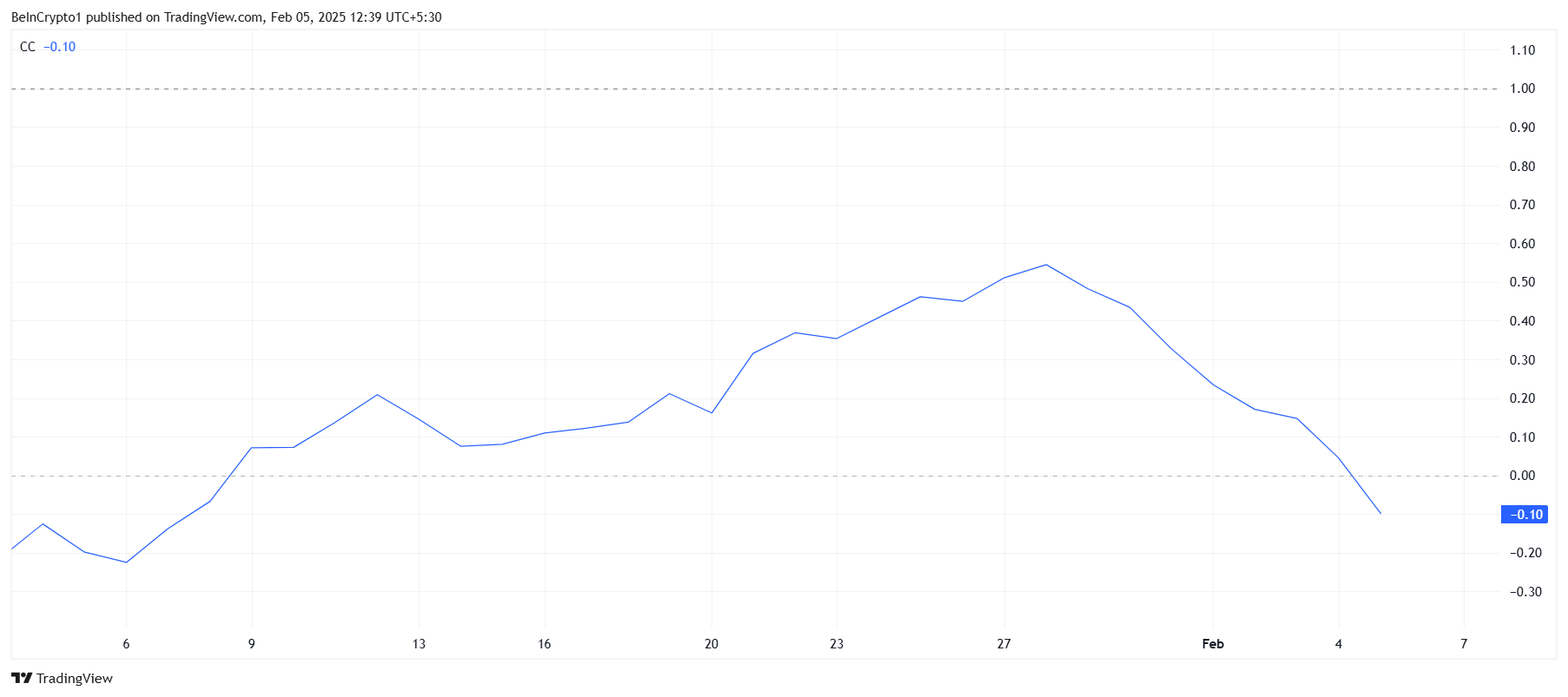 การอ่อนตัวของความสัมพันธ์นี้อาจทำให้ HYPE อ่อนแอลงต่อการปรับฐาน เนื่องจากราคาของมันอาจไม่ตอบสนองต่อการเคลื่อนไหวของ Bitcoin หาก Bitcoin ยังคงแสดงความแข็งแกร่ง การขาดความสัมพันธ์ของ HYPE อาจนำไปสู่การดิ้นรนต่อไป ขัดขวางความสามารถในการฝ่าด่านแนวต้านที่สำคัญ