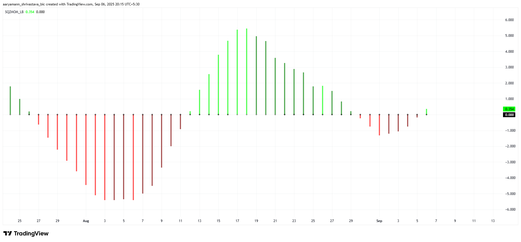 ตัวชี้วัดแรงขับเคลื่อนการบีบก็กำลังบ่งบอกถึงการทะลุที่อาจเกิดขึ้น จุดสีดำปรากฏในโซนขาขึ้น ขณะที่แท่งสีเขียวเน้นถึงแรงขับเคลื่อนที่ขยายตัว การตั้งค่านี้บ่งชี้ว่าเมื่อการบีบคลายตัว HYPE อาจมีการเคลื่อนไหวของราคาที่เร่งขึ้น