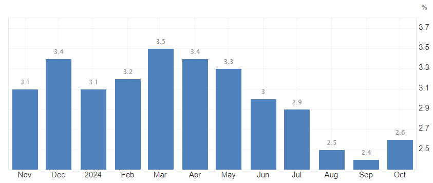 กระทรวงแรงงาน รายงาน ว่าเงินเฟ้อ CPI รายเดือนยังคงอยู่ที่ 0.2% ซึ่งเท่ากับตัวเลขของเดือนกันยายน อย่างไรก็ตาม การเพิ่มขึ้นรายปี 2.6% ถือเป็นการเพิ่มขึ้นครั้งแรกในรอบแปดเดือน