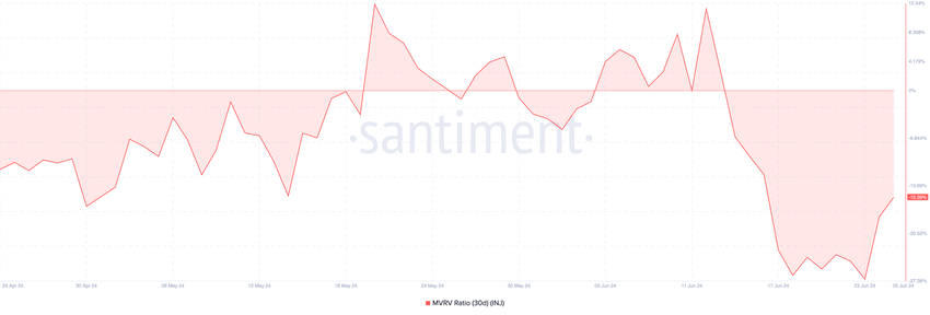 ดังที่แสดงด้านบน อัตราส่วน MVRV 30 วันของ Injective คือ 15.35% โดยปกติแล้ว ผู้ถือ INJ ควรงดเว้นจากการขาย เนื่องจากความสามารถในการทํากําไรต่ํา อย่างไรก็ตาม อัตราส่วนดังกล่าวสูงกว่าเมื่อวันที่ 23 กรกฎาคม ซึ่งบ่งชี้ว่าการขาดทุนที่ยังไม่เกิดขึ้นจริงของผู้ถือบางรายลดลง