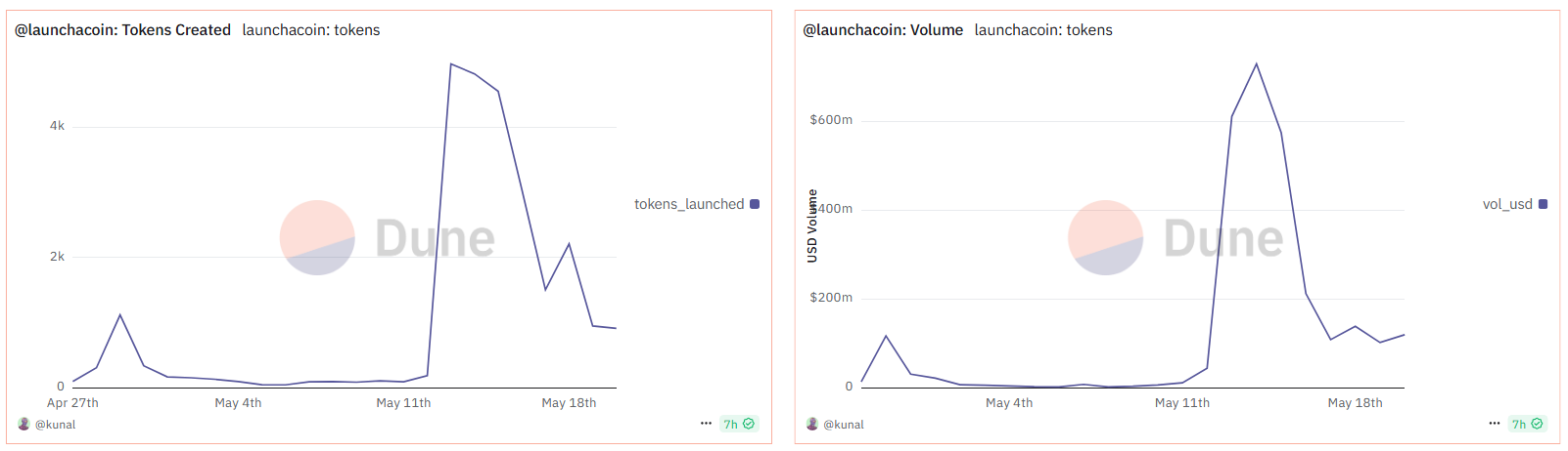 เช่นเดียวกัน จำนวนโทเค็นที่ สร้างใหม่ต่อวัน ลดลงจาก 4,977 ในวันที่ 13 มีนาคม เหลือเพียง 1,134 ภายในวันที่ 20 พฤษภาคม