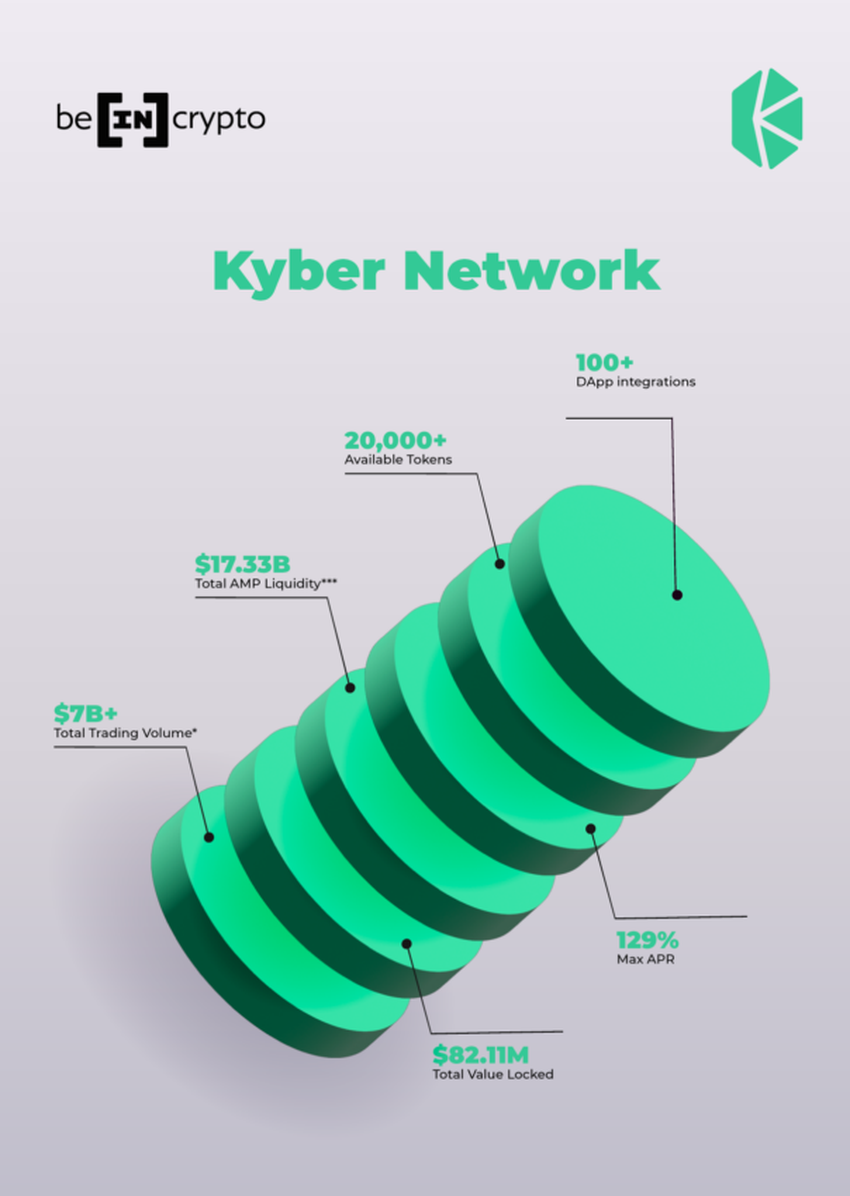 KyberSwap ได้รวบรวมสกุลเงินดิจิทัลต่าง ๆ ไว้กว่าร้อยสกุล เกิดเป็นรายการธุรกรรมมูลค่ากว่า 7 พันล้านดอลลาร์โดยผู้ใช้หลายพันคนได้รับการอำนวยความสะดวกตั้งแต่เริ่มก่อตั้งแพลตฟอร์ม
