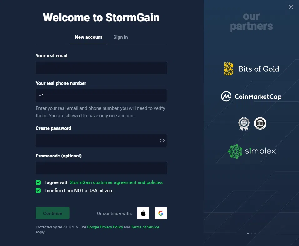 ในการเริ่มต้น คุณจะต้องสมัครบัญชีเว็บเทรดสกุลเงินดิจิทัล เช่น StormGain, Coinbase หรือ Binance ในการดำเนินการดังกล่าว คุณจะต้องสร้างบัญชีด้วยที่อยู่อีเมลและรหัสผ่านของคุณ จากนั้น คุณจะต้องยืนยันตัวตนของคุณตามนโยบายของการแลกเปลี่ยน