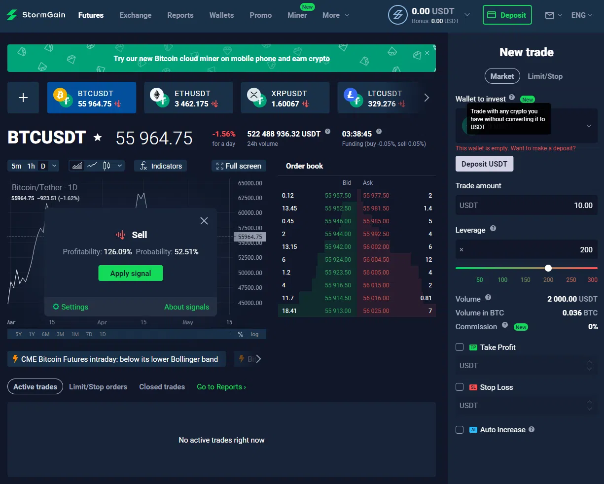 ในบทความนี้ เราจะใช้ StormGain เป็นตัวอย่าง